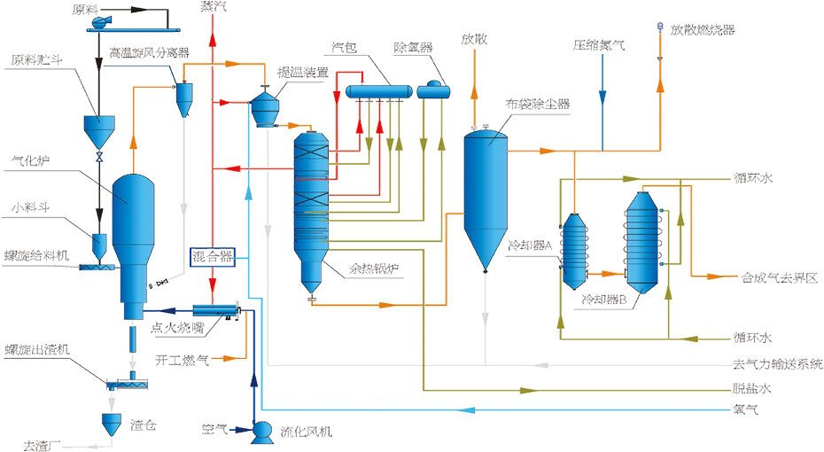 ? 進(jìn)料位于氣化爐底部濃相區(qū),可使物料充分混合和反應(yīng)。